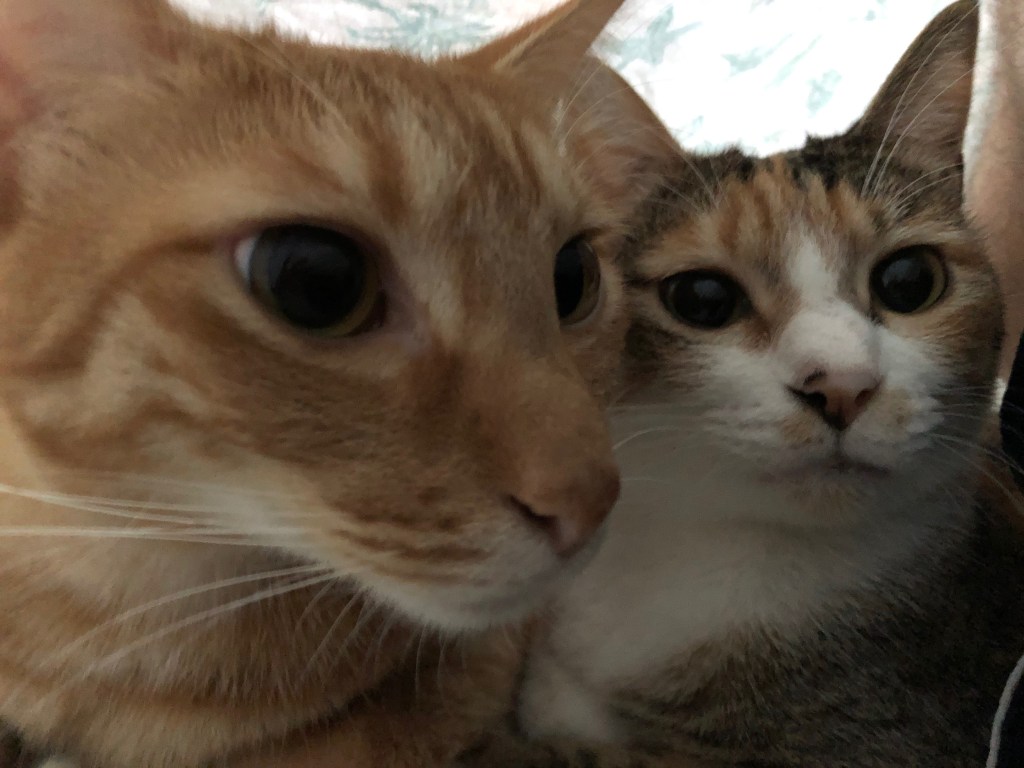 Tora and Sakura Hiding Under Covers! Misawa, Japan. November 2019. Photo by Greg Vessar.