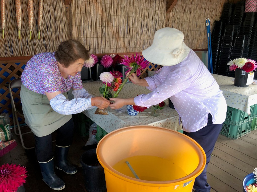 Hibarino Dahlia Park is a beautiful flower garden located in Aomori Prefecture near Gonohe, about 45 minutes southwest of Misawa . Although the park is small, it contains over 1,500 plants and 160 different types of dahlias and is open daily from 8:00am to 5:00pm. Entry fee is a mere ¥300 per person for unlimited access to the dahlia garden to wander among stunning visions of color. The people tending the garden are very welcoming and willing to answer questions. If you want to take a bit of the garden home, you can buy various combinations and sizes of dahlias to brighten your day. Melissa bought a beautiful bouquet of dahlias for only ¥300. This Lilliputian park contains immense beauty that I could not begin to describe with words, so I will let pictures tell the story of this dahlia heaven!
