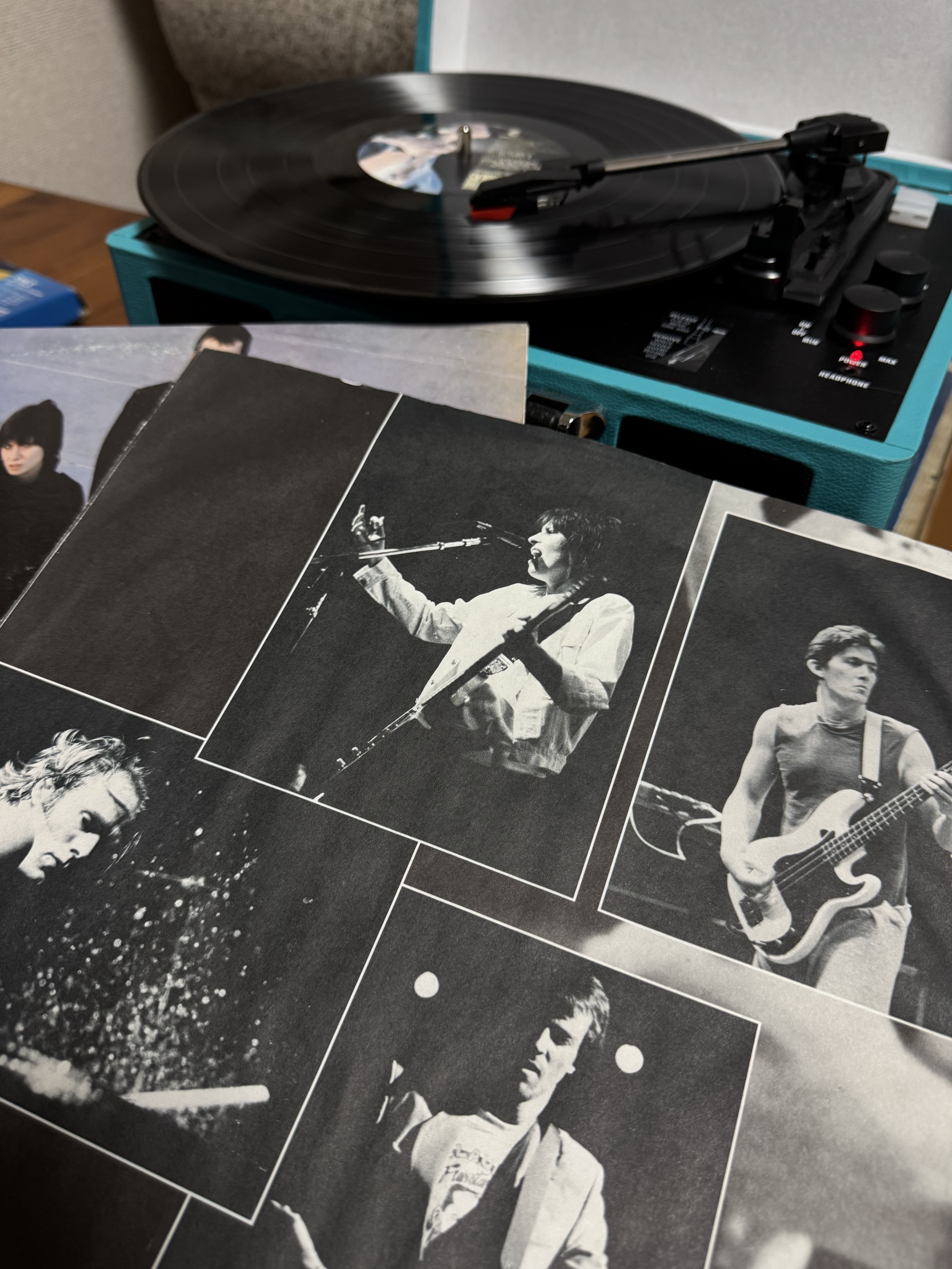 As I thumbed through albums, Learning to Crawl caught my eye and I mounted it on my portable turntable. I drank in the cover, back cover, and liner photos. I miss doing that! Vinyl was and is the best medium for an all encompassing music experience. Compact discs are good, if you want the clear, un-crackled digital experience with cover photos and liner notes of reduced size. And digital is convenient and most streaming services make photos and other links available, but to hold that full sized album and caressingly remove the vinyl from the sleeve…hmmm seductive!